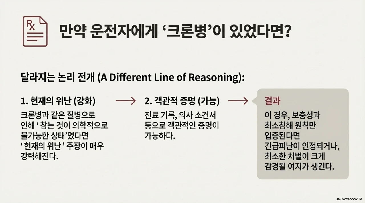 하지만 같은 12대 중과실인 중침과 신호위반이 급똥이 왔다고 긴급피난으로 인정 받을까?
