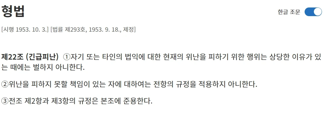 그 밑으로는 아니다 범법이다. vs 긴급피난이다