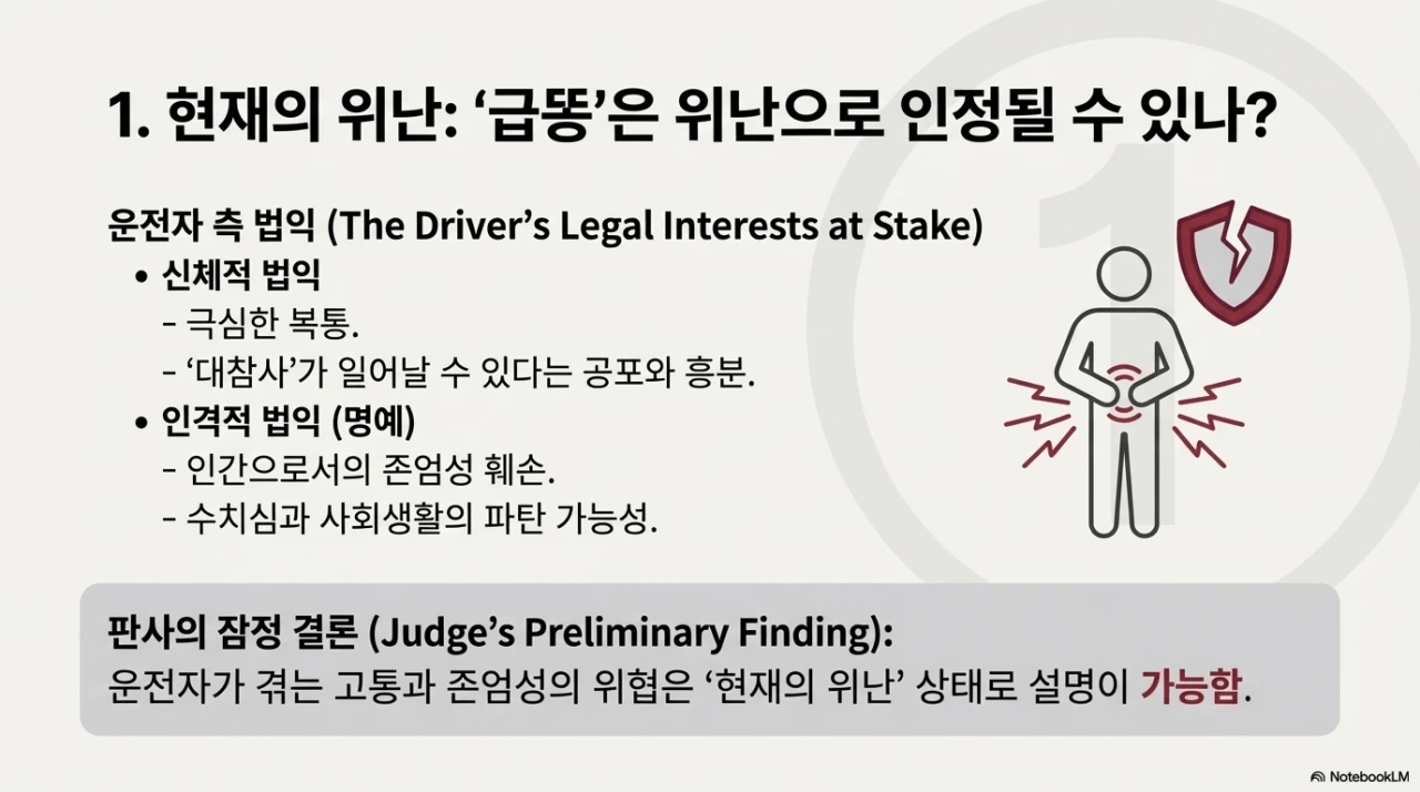 자 그러면 [운전 중 급똥] 상황이 저 긴급피난에 부합하는지 한번 알아보자
