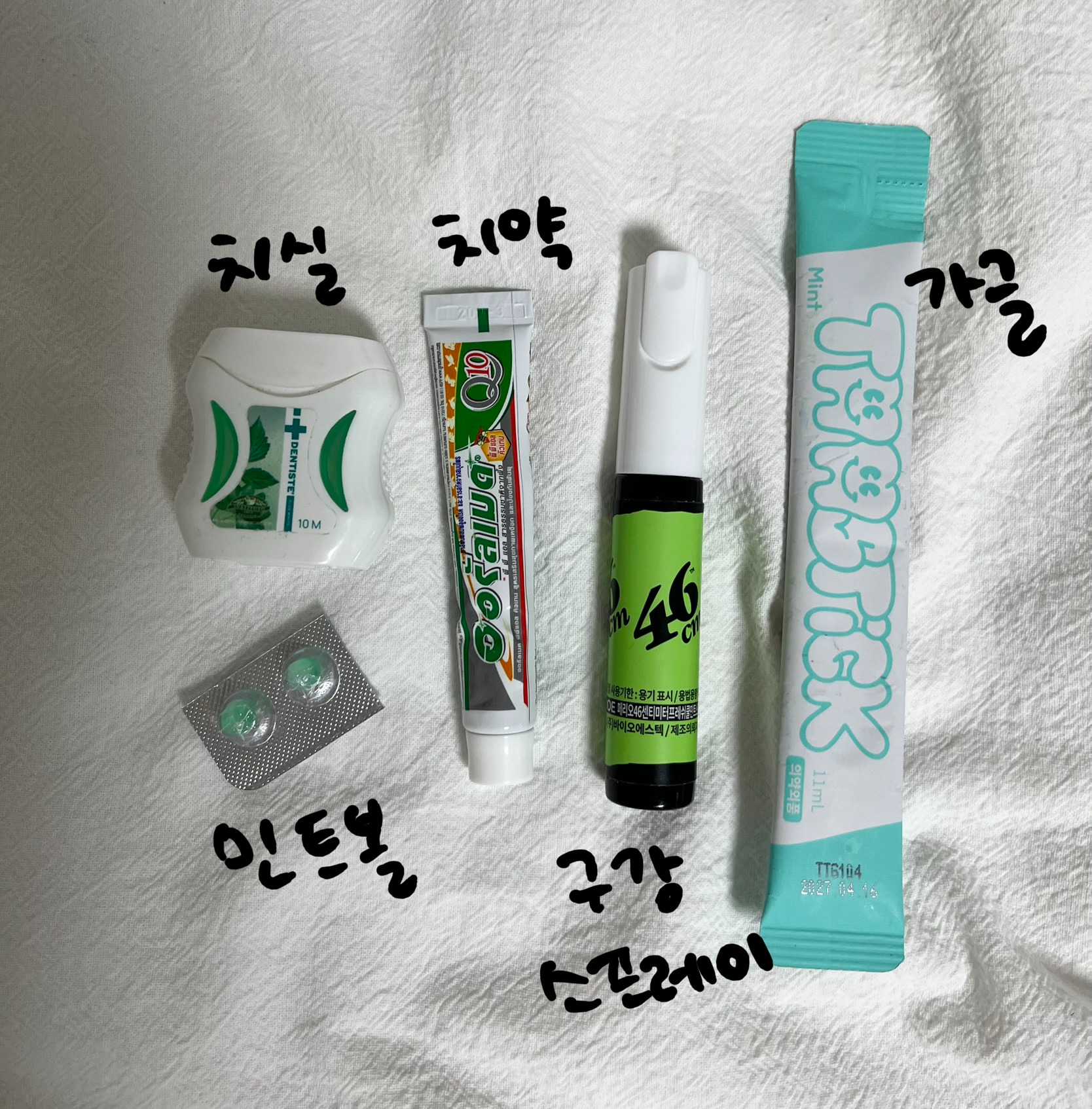 구강템들.. 치실 저거 태국에서 산 건데 미니라 개졸귀라 아껴쓰는중 ,,