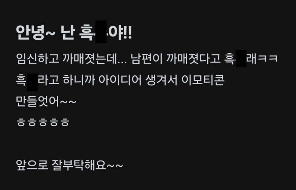[흥미돋]남편이 흑X라고 놀려서 이모티콘 만들었어 작성자밍밍이의 초코 쉬폰 만들기|작성시간26.03.29|조회수46,225 목록 댓글 577 글자크기 작게가 글자크기 크게가 출처: 여성시대 밍밍이의 초코 쉬폰 만들기https://x.com/2306_ing/status/2037496845023498359?s=46&t=T2zNMuaJ9rVQROFC7-ZB5g 다음검색 현재 게시글 추가 기능 열기 북마크 공유하기 신고 센터로 신고 댓글 댓글 577 댓글쓰기 답글쓰기 댓글 리스트 작성자오스만투스투스 | 작성시간 26.03.31 와 개충격.........................아이큐 65 같음 작성자빵집여시 | 작성시간 26.03.31 .. 작성자Calling in love | 작성시간 26.03.31 .......와.. 작성자치즈볼 더 위자드 | 작성시간 26.03.31 .........? 작성자해피해피주말 | 작성시간 26.03.31 출산후 여성의 몸 변화일뿐인건데 뭔가 조롱하는거같아서 ㅂㄹ 댓글 전체보기