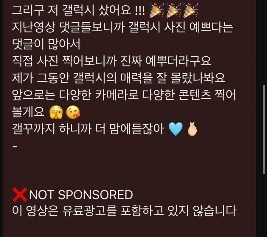 예전 갤럭시는 사진이 잘 안 나와서 그랬다구 합니다