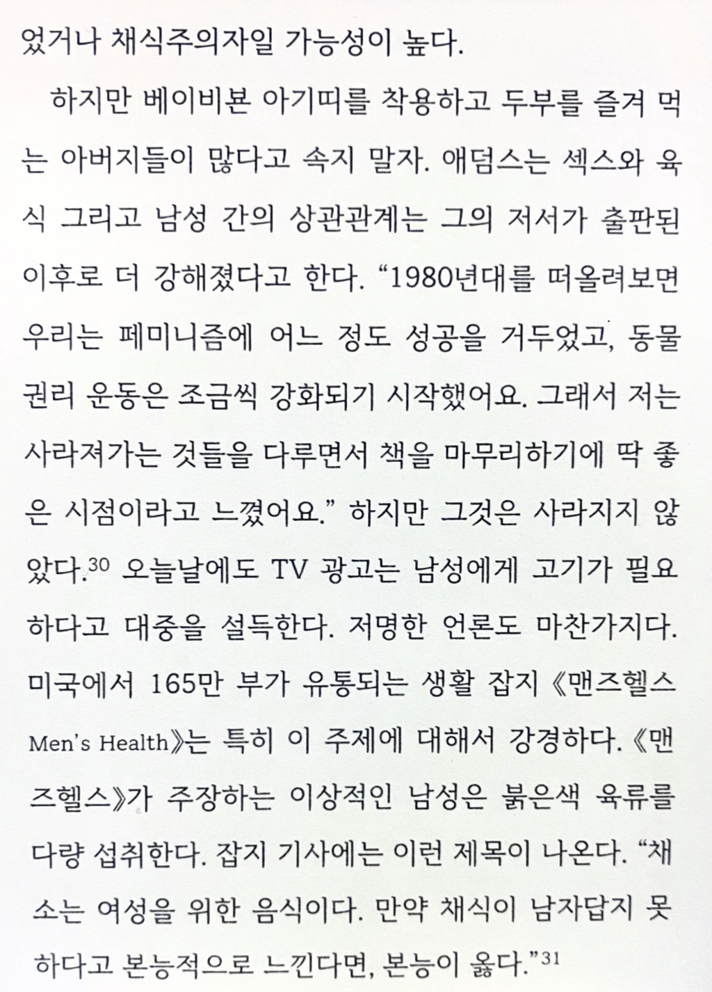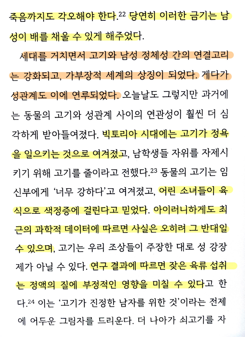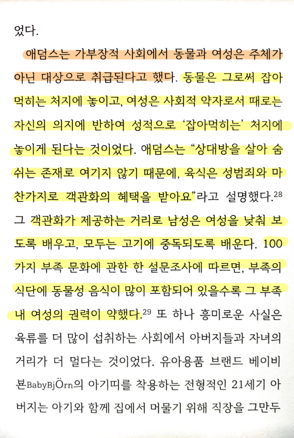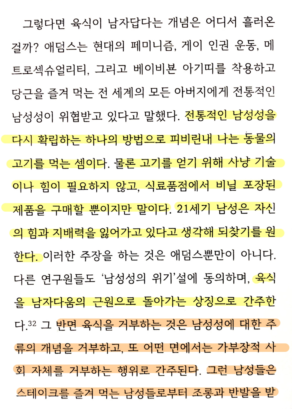 채식한다고하면 게이, 여혐욕, 장애인비하, 인종차별 등등 각종 약자혐오스러운 반응이 나오는 이유에 대해 고찰한 책부분이 있어서 가져옴