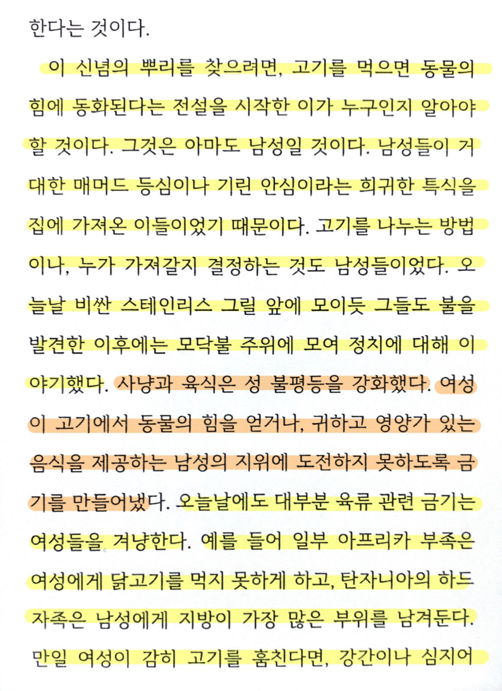 1. 수렵채집할때부터 사냥, 분배(=정치)하는게 남성들이였기때문에, 육식문화가 성불평등을 강화시킴