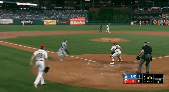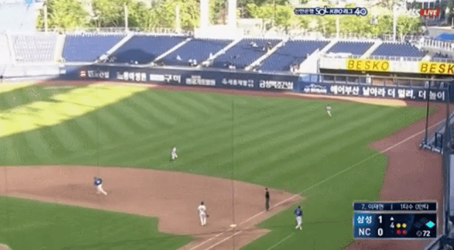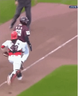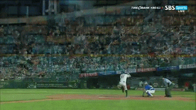 공이 워낙 멀리 갔기에 3루 주자는 충분히 홈으로 들어갈 여유가 생김