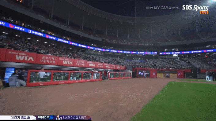 그러다가 5회에는 경기장을 함 쓸고 닦아야해서