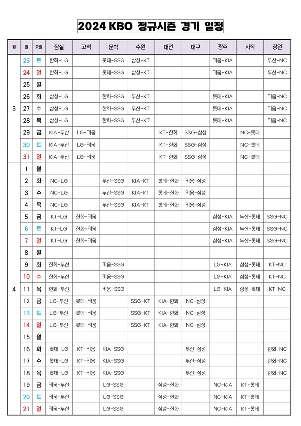 (일주일에 월요일빼고는 경기 다함, 보통 봄~여름후반까지 진행)