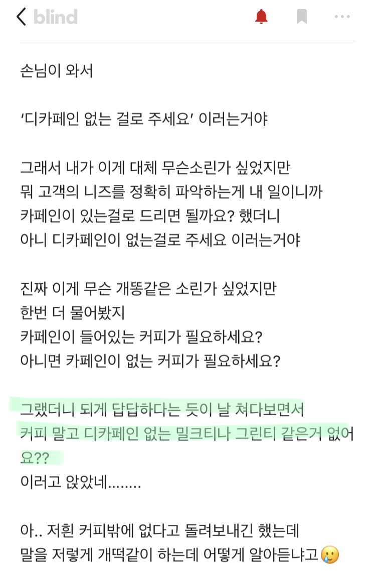 작성자고래를 타고 떠나는 여행 작성시간 26.03.31 디카페인이 카페인이 없다는 뜻인데 뭘 좀 알고 말해봐