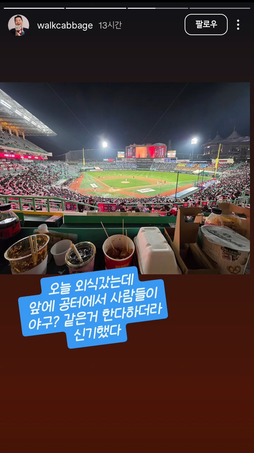 [배꼽의행방]오늘 외식 갔는데 앞에 공터에서 사람들이 야구? 같은 거 한다 하더라 작성자공가|작성시간26.04.02|조회수6,835 목록 댓글 13 글자크기 작게가 글자크기 크게가 출처: 여성시대 공가, 진돌 인스타그램https://www.instagram.com/stories/walkcabbage/3865762785656961208?utm_source=ig_story_item_share&igsh=MXc5czJheHVzZDIzbQ== 다음검색 현재 게시글 추가 기능 열기 북마크 공유하기 신고 센터로 신고 댓글 댓글 13 댓글쓰기 답글쓰기 댓글 리스트 작성자치즈가세상구한다 | 작성시간 26.04.02 야물딱지게 맛있는거 다 먹었네 작성자싹싹단무지 | 작성시간 26.04.02 사실상 음식점이라고 보면 돼 작성자박숭한 | 작성시간 26.04.02 ㅋㅋㅋㅋㅋㅋㅋㅋ그냥 도원아재 그잡채밥ㅋㅋㅋㅋㅋ 작성자홍차코코아 | 작성시간 26.04.02 문학식당 가셨구나ㅋㅋㅋㅋㅋㅋㅋ 작성자검은돼지강아지 | 작성시간 26.04.03 아니 어제가지ㅠ 댓글 전체보기