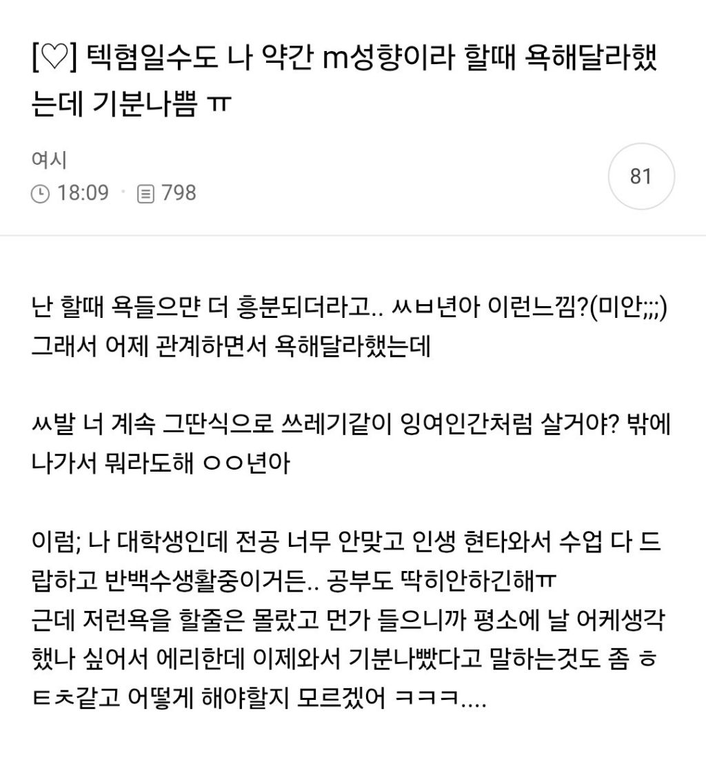 [스크랩] [기타]더티톡 실패썰 2개 작성자방구대통령|작성시간26.04.03|조회수14,150 목록 댓글 42 글자크기 작게가 글자크기 크게가 ㅠ 다음검색 스크랩 원문 : *여성시대* 차분한 20대들의 알흠다운 공간 현재 게시글 추가 기능 열기 북마크 공유하기 신고 센터로 신고 댓글 댓글 42 댓글쓰기 답글쓰기 댓글 리스트 작성자쏴버릴까 | 작성시간 26.04.03 존나 웃기다고 ㅋㅌㅋㅋㅋㅋㅋ 작성자적당히 살자 | 작성시간 26.04.03 미밴드 ㅅㅂ ㅋㅋㅋㅋㅋㅋㄱㅋㄱ 작성자채린체리 | 작성시간 26.04.03 냅다 회초리를 갈겨버리는 작성자마복필 | 작성시간 26.04.04 당연하지 아니고?ㅋㅋㅋㅋㅋㅋㅋㅋㅋㅋㅋㅋㅋㅋㅋㅋㅋㅋㅋㅋㅋㅋ 작성자lateCheckout | 작성시간 26.04.04 ㅋㅋㅋㅋㅋㅋㅋ샤갈ㅋㅋㅋㅋㅋㅋㅋㅋㅋㅋㅋ 댓글 전체보기