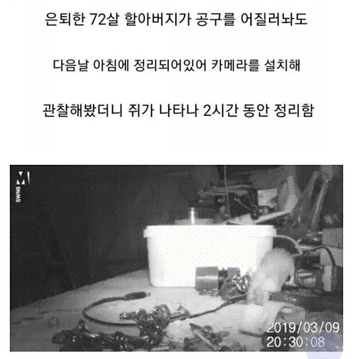 [스크랩] [흥미돋]공구함이 자꾸 정리되서 cctv를 달아보았더니...ㄷㄷ.gif 작성자엿시씌|작성시간26.04.04|조회수31,660 목록 댓글 56 글자크기 작게가 글자크기 크게가 다음검색 스크랩 원문 : 도탁스 (DOTAX) 현재 게시글 추가 기능 열기 북마크 공유하기 신고 센터로 신고 댓글 댓글 56 댓글쓰기 답글쓰기 댓글 리스트 작성자세상에서 가장 다정한 ENTJ | 작성시간 26.04.04 우렁뚜이... 작성자강철소녀 | 작성시간 26.04.04 밤엔 자기 구역인데 더러워져있어서 청소한걸까 귀여워.. 작성자deala | 작성시간 26.04.04 어 예전에 이런동화 본 거 같은데 작성자엔트로피 | 작성시간 26.04.04 착한쥐 작성자강쥐고양이사랑해 | 작성시간 26.04.04 왜하는거지???종나궁금해 존나귀여워 ㅠㅠㅠㅠㅠㅠㅠㅠㅠㅠㅠㅠㅠ천재쥐같애 댓글 전체보기