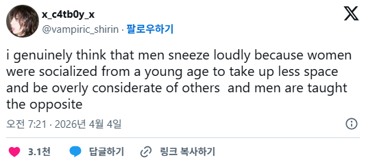 작성자이보니 작성시간 26.04.04 남자들끼리만 모여살았으면 좋겠음ㅠㅠ