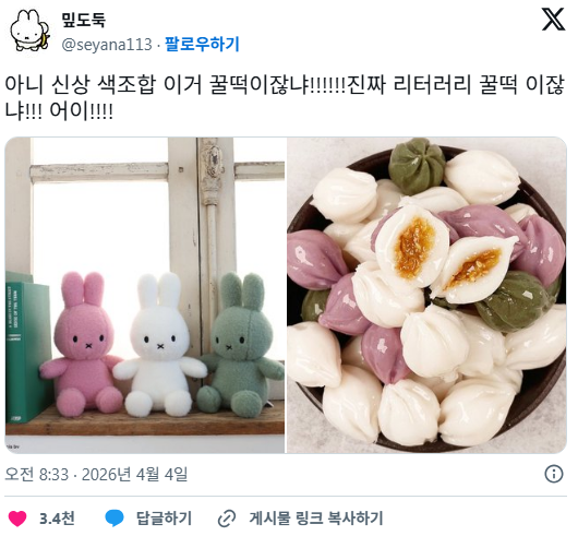 *여성시대* 차분한 20대들의 알흠다운 공간 [흥미돋]아니 미피 신상 색조합 이거 꿀떡이잖냐!!! 작성시간26.04.04|조회수36,637 목록 댓글 18 글자크기 작게가 글자크기 크게가 출처: https://theqoo.net/square/4150991087 https://x.com/seyana113/status/2040211103645642953?s=46 다음검색 현재 게시글 추가 기능 열기 북마크 공유하기 신고 센터로 신고 댓글 18 댓글 리스트 작성시간 26.04.04 너무 귀엽다.... 얘넨 꼭 세트바리로 사야겠네ㅠㅠㅠㅠ 작성시간 26.04.04 개귀엽네 ㅁㅊㅋㅋㅋㅋㅋ 작성시간 26.04.04 ㄱㅇㅇ 작성시간 26.04.04 ㄱㅇㅇ 작성시간 26.04.04 꿀떡에디션 카페 방문해 더 많은 댓글 만나기!