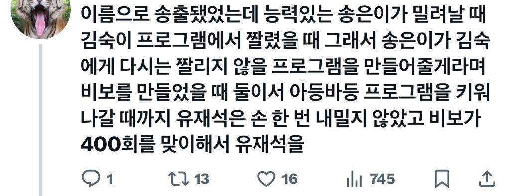 작성자DIGI LOCA 작성시간 26.04.06 결론: 유재석 ㅈㄴ잘살고있다