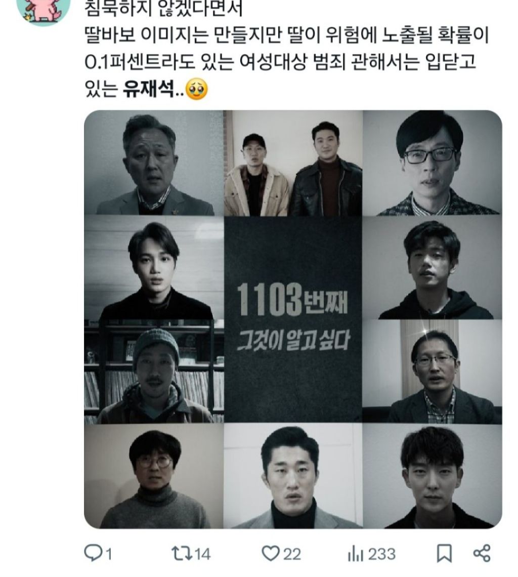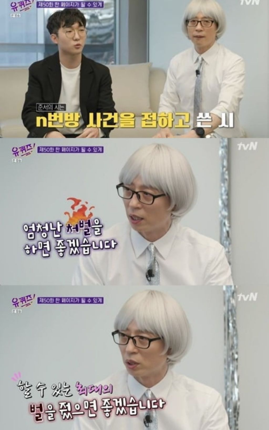 유퀴즈에서 N번방 처벌이랑 청원동의 언급함 그리고 아는 사람들은 다 알겠지만
