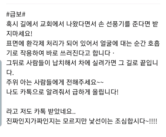 [스크랩] [흥미돋]손선풍기 환각제 루머 작성자알티드래곤|작성시간26.04.08|조회수40,132 목록 댓글 21 글자크기 작게가 글자크기 크게가 출처 : 여성시대 넌나에게 목욕값을줬어.지금 현시점 퍼지고있는 손선풍기 환각제.누가 처음에 퍼트렸을지 모르는 상황.단톡이며 지금 다 난리가났음출처를 알길이 없는상황도시괴담이라는 추측만 난무할뿐증거가 없음 다음검색 스크랩 원문 : *여성시대* 차분한 20대들의 알흠다운 공간 현재 게시글 추가 기능 열기 북마크 공유하기 신고 센터로 신고 댓글 댓글 21 댓글쓰기 답글쓰기 댓글 리스트 작성자그러면서성장하는거라생각해 | 작성시간 26.04.08 ㅋㅋㅋㅋㅋ표면에 발려있지만 작동시켜야지만 흡입되는겨?ㅋㅋㅋㅋㅋㅋㅋㅋㅋㅋㅋ 작성자봄쭈꾸미 | 작성시간 26.04.08 아 울엄마아빠가 보낼법한 루머아니야 ㅋㅋㅋㅋㅋㅋ 작성자김왠수 | 작성시간 26.04.08 환각제인데 왜 쓰러지나요 마취제도 아니고 작성자디스땃쥐 | 작성시간 26.04.08 환각제인데 쓰러지고 누가 손풍기주면 새제품줄텐데 바로켜보냐고욬ㅋㅋㅋㅋ 작성자서현 | 작성시간 26.04.08 주면 땡큐지..박박 닦아서 쓸게 댓글 전체보기
