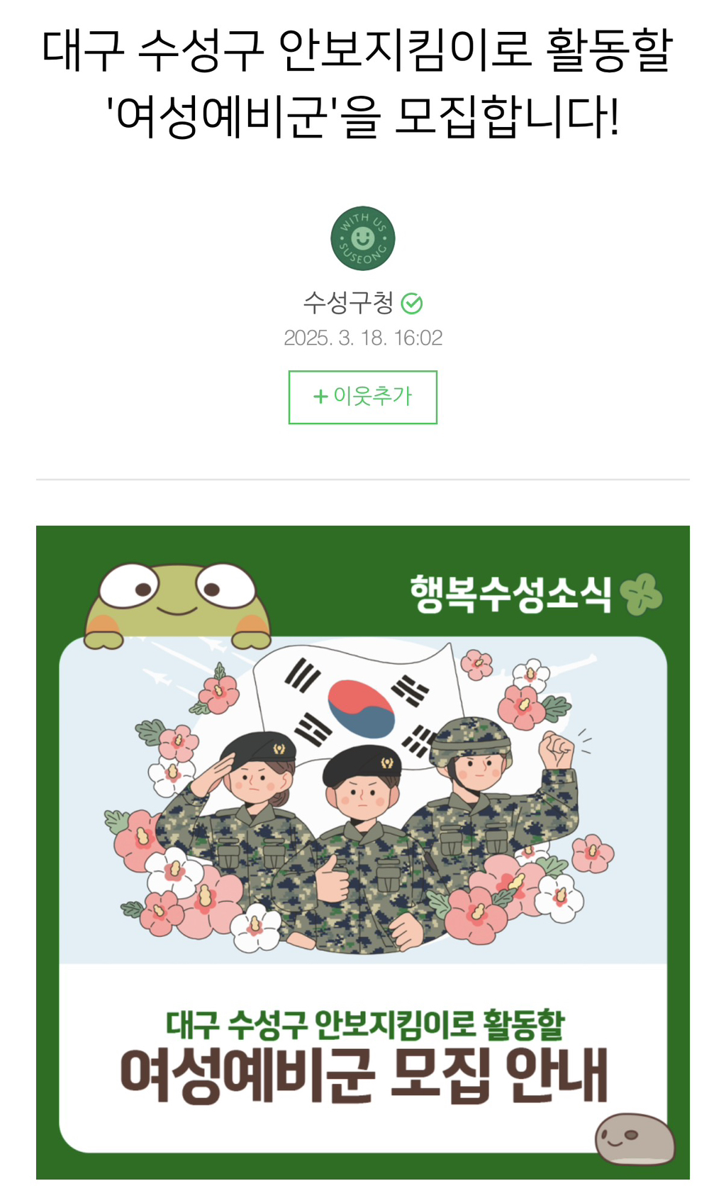 정확히 ‼️여성 예비군‼️이라고