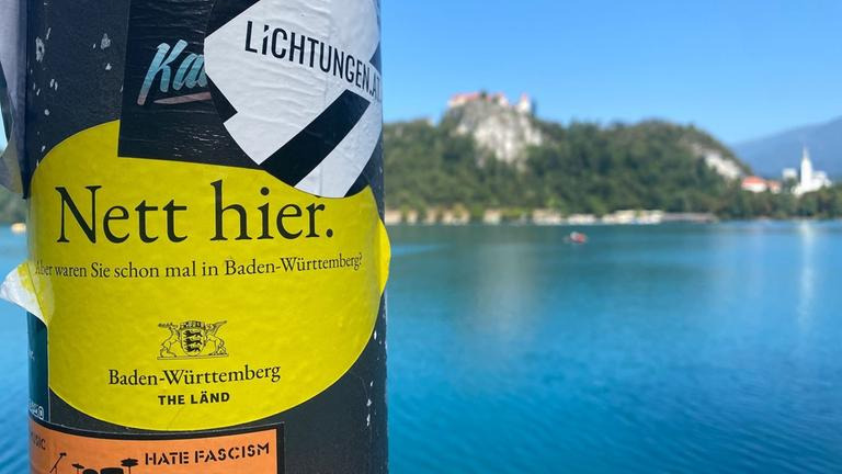 그 아래의 "Aber waren Sie schon mal in Baden-Württemberg?" 는 "하지만 바덴-뷔르템베르크에 와보셨나요?" 라는 뜻임.
