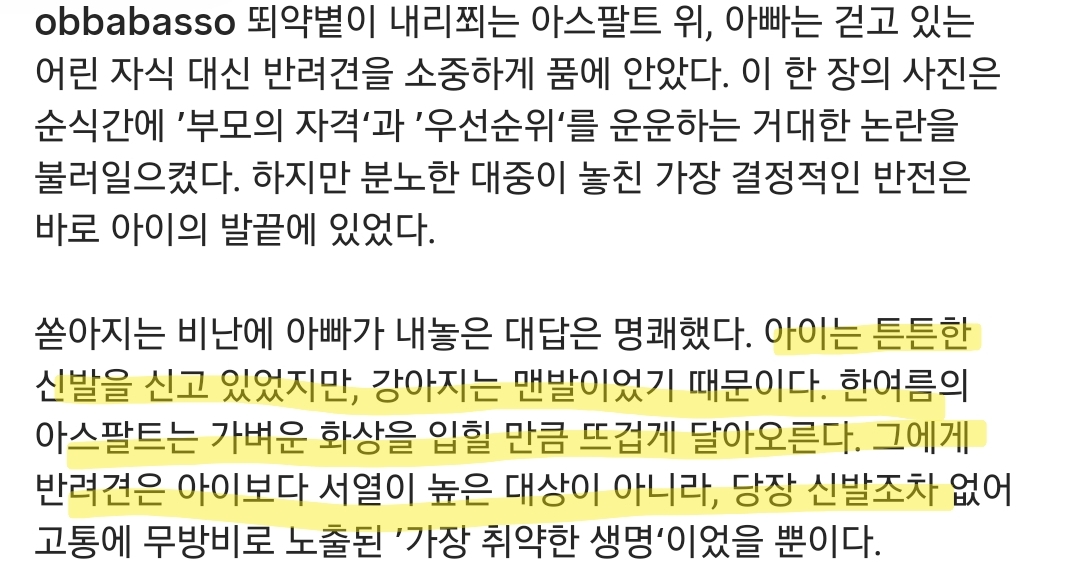 *여성시대* 차분한 20대들의 알흠다운 공간 [흥미돋]아이 대신 개를 안고 걸어 욕 먹은 아빠가 한 말 작성시간26.04.09|조회수69,431 목록 댓글 70 글자크기 작게가 글자크기 크게가 출처: 여성시대 눈물이방울방울 맞말이지 개는 신발이 없잖아 다음검색 현재 게시글 추가 기능 열기 북마크 공유하기 신고 센터로 신고 댓글 70 댓글 리스트 작성시간 26.04.09 저러고 가든 뭘 하든 뭔 상관임ㅋ 작성시간 26.04.09 난리야 진짜 ㅋㅋㅋㅋㅋㅋ 아기가 걷기 싫어 했으면 유아차 태우던가 엄마가 안아저ㅓㅅ겟지 작성시간 26.04.09 사진에 있는 가족 보기좋다 ㅋㅋㅋㅋㅋㅋ 작성시간 26.04.09 저걸로 뭐라 하는게;; 작성시간 26.04.10 참개비 카페 방문해 더 많은 댓글 만나기!