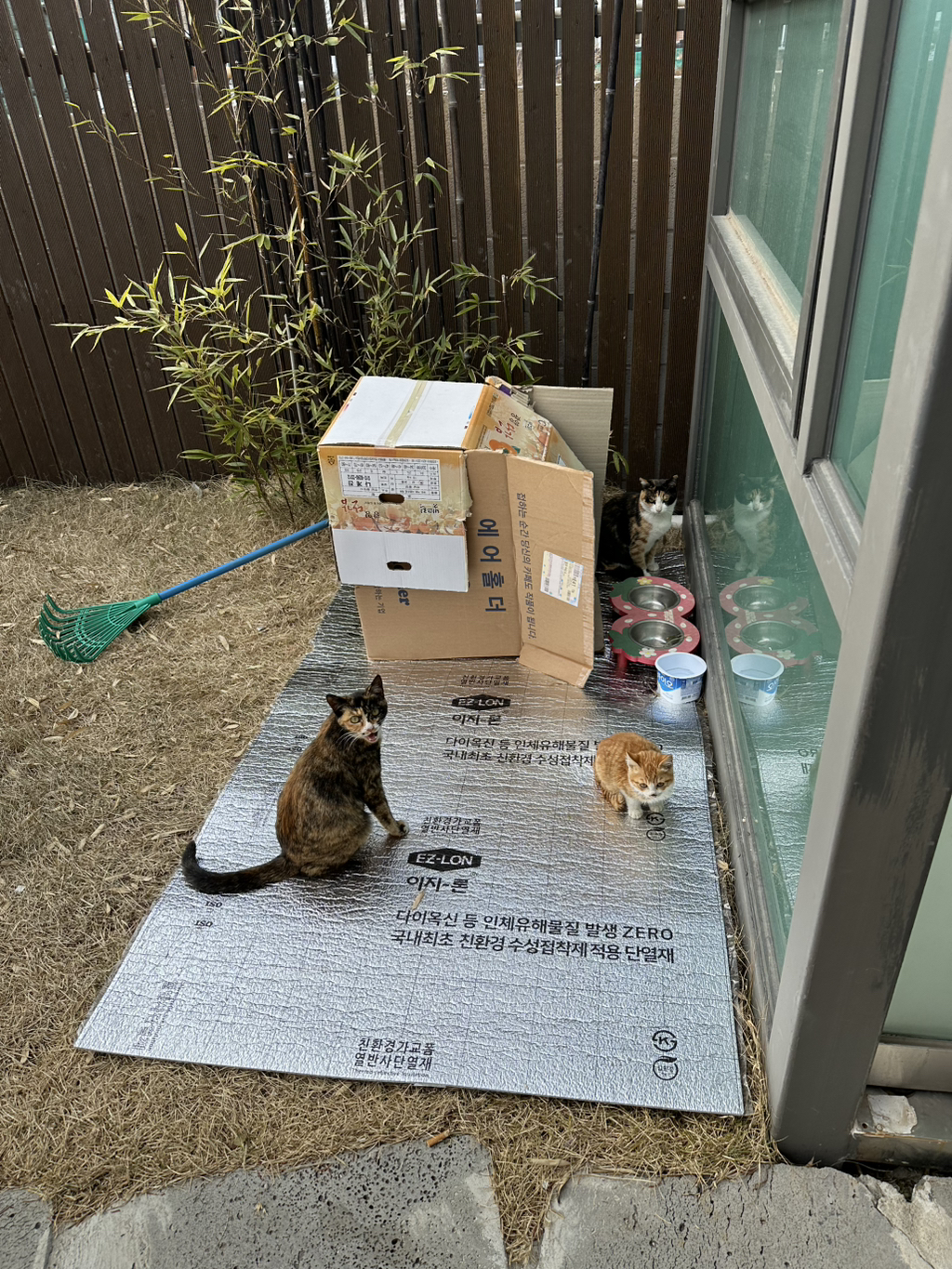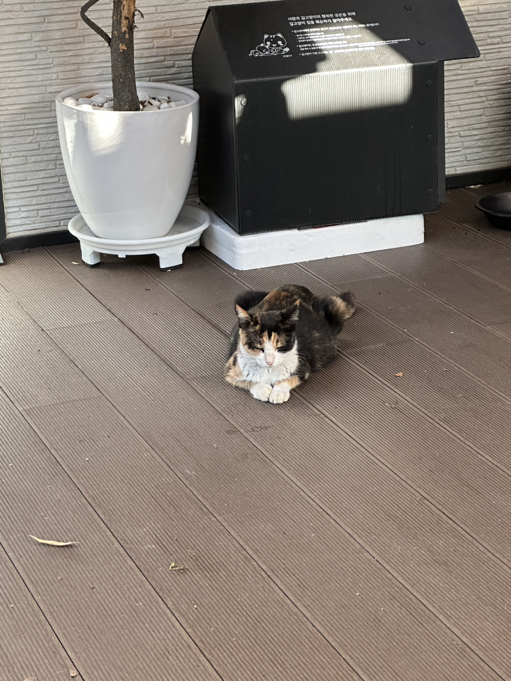 밥 주는 건 기억했는지 냥 인사만 하고 경계하느라 도망갔어