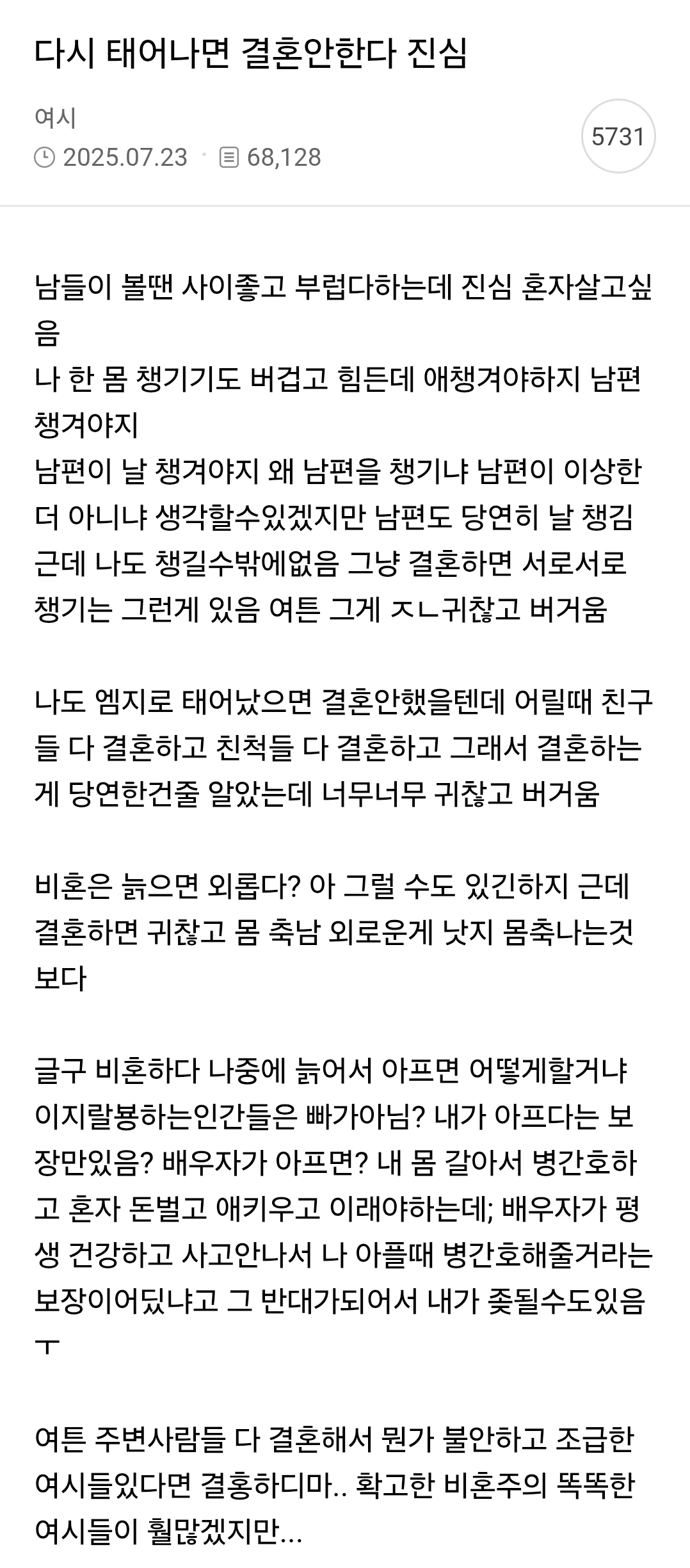 자식이나 남편 죽을까봐 결혼 못하겟다는 사람도 없긴하네 -