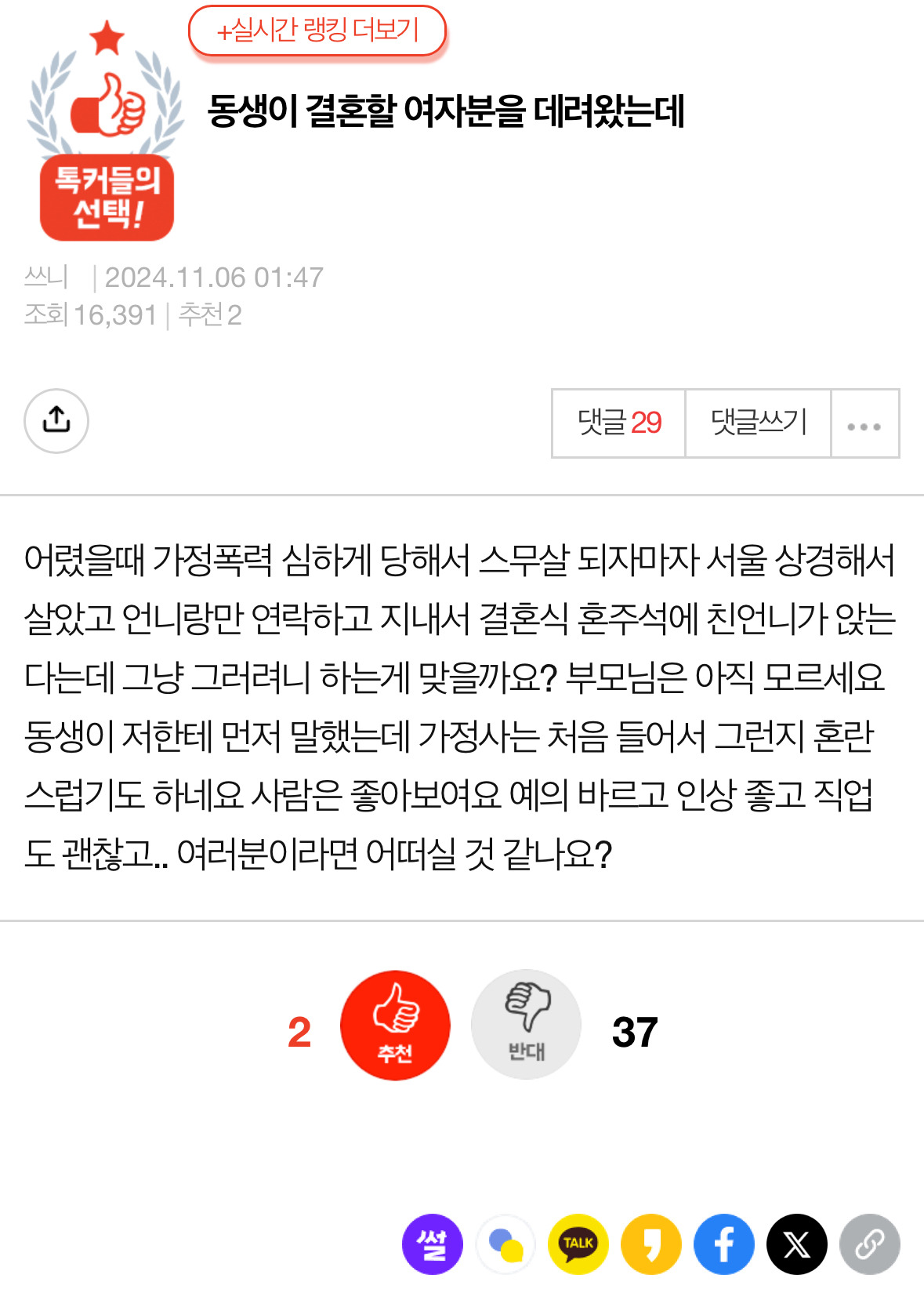 작성자1억모으자 작성시간 26.04.10 가정폭력 당했음에도 불구하고 잘 자라서 동반자 만나서 결혼을 한다니... 축하해주면 될것 같음