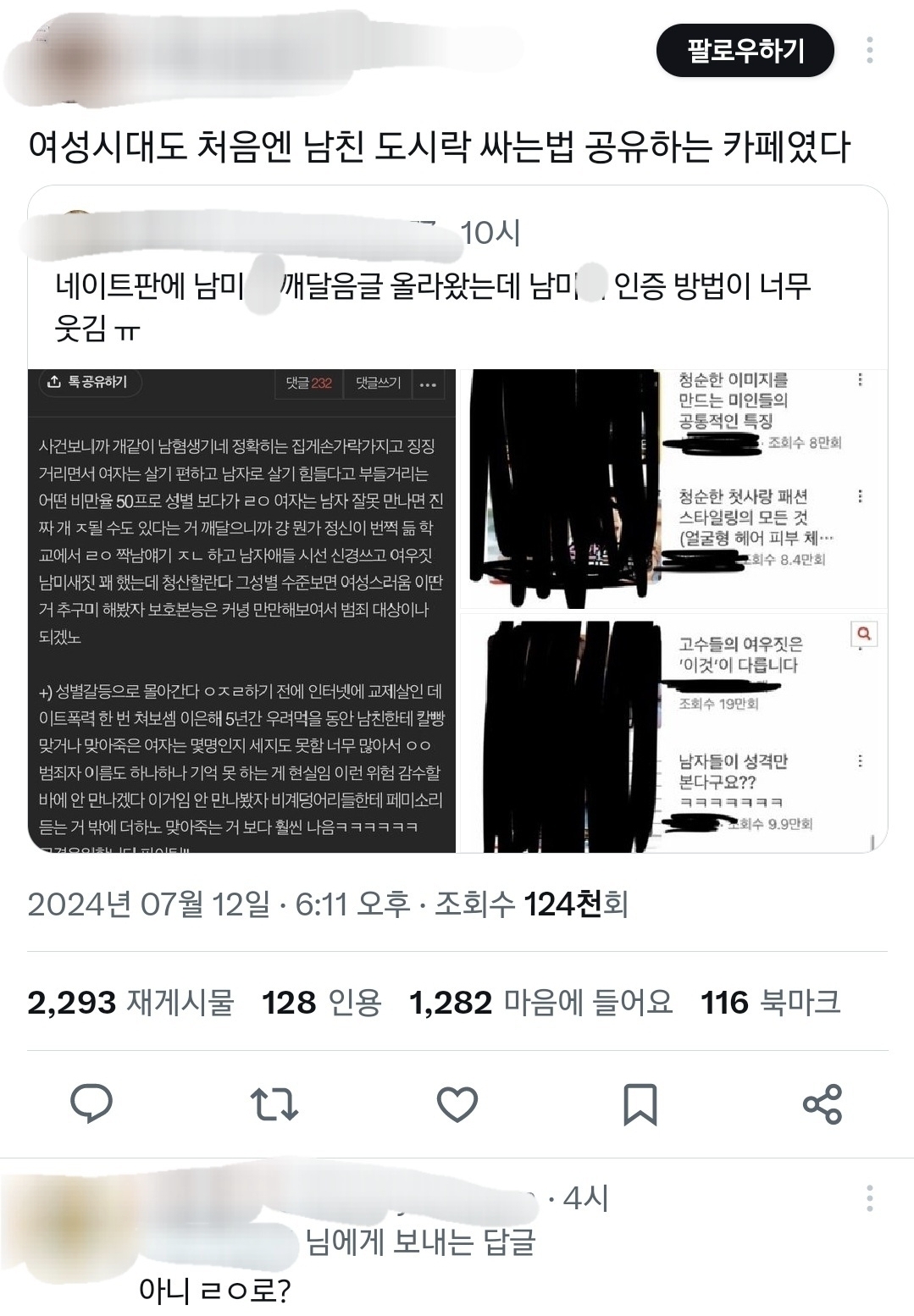 지금 남자 까는 글 많이 올라오고 저런 깨달음 글들도 올라오는 거 보면