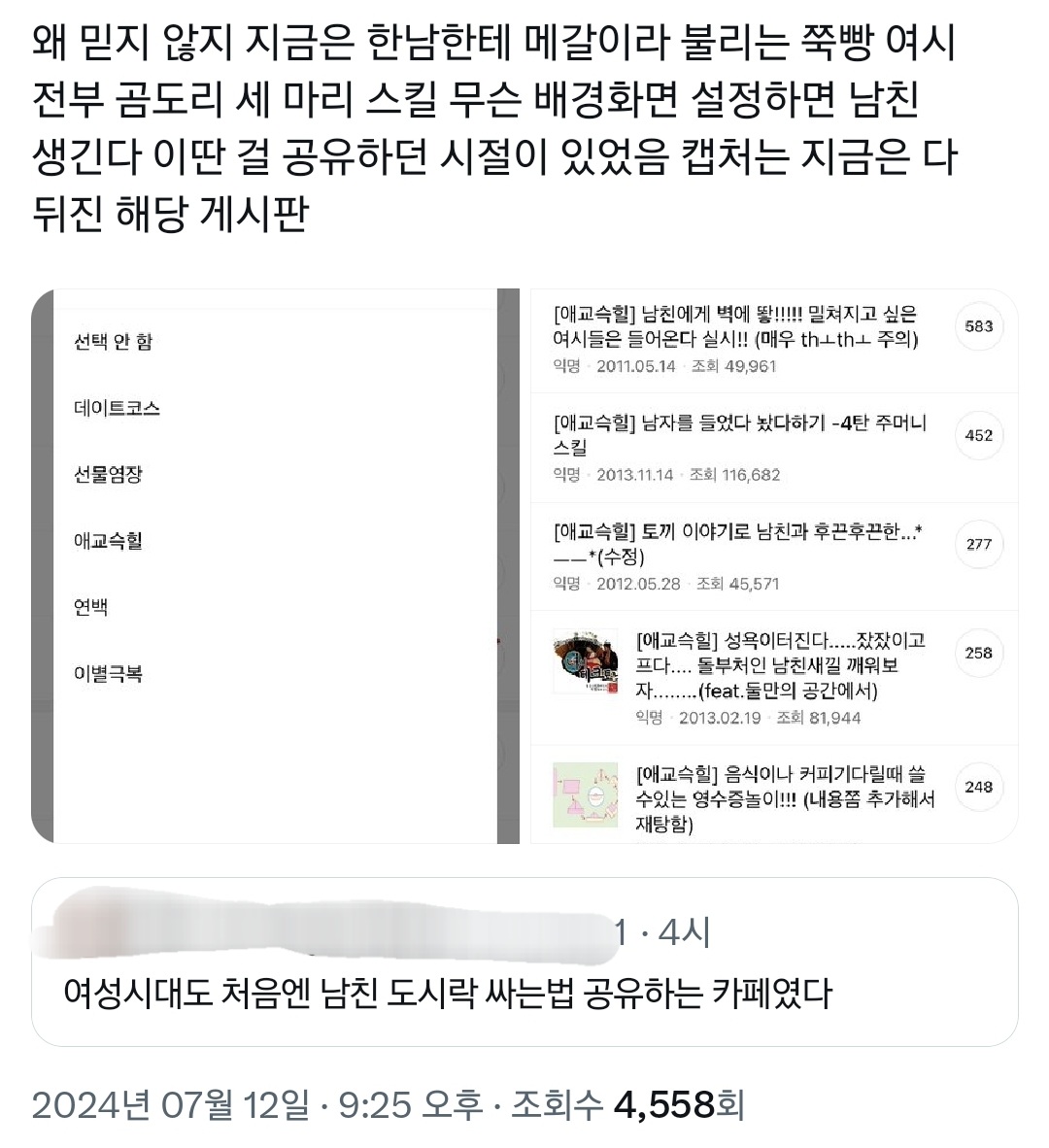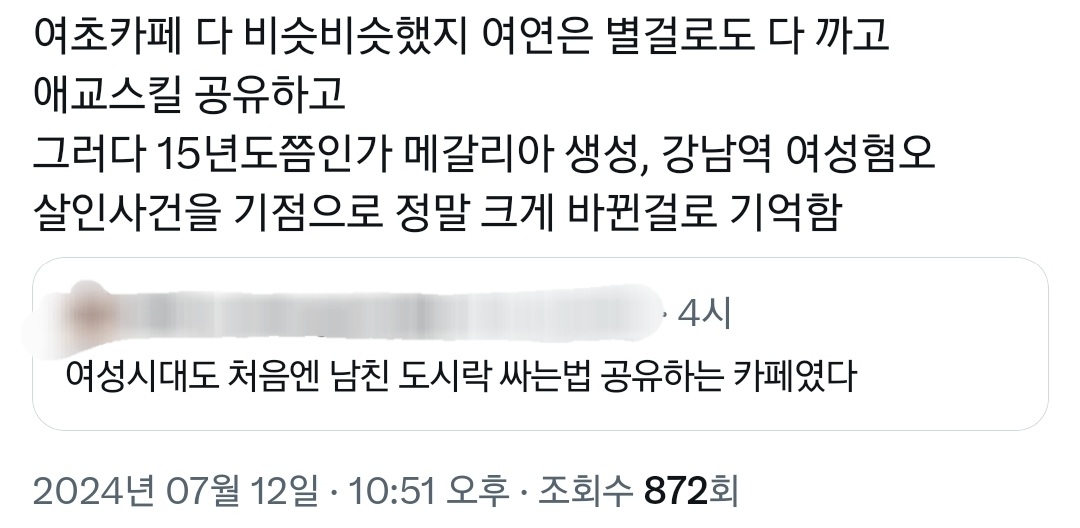 위에 트윗들에도 써있듯이 여시뿐만아니라 대부분의 여초들이 다 저런 기조였고