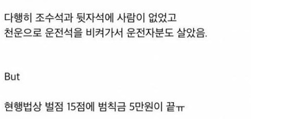 [스크랩] [흥미돋]끔찍할뻔 했던 교통사고 작성자뭄새|작성시간26.04.10|조회수8,387 목록 댓글 27 글자크기 작게가 글자크기 크게가 다음검색 스크랩 원문 : 도탁스 (DOTAX) 현재 게시글 추가 기능 열기 북마크 공유하기 신고 센터로 신고 댓글 댓글 27 댓글쓰기 답글쓰기 댓글 리스트 작성자폰여시 | 작성시간 26.04.10 아진짜 너무 끔찍하다 벌점에 오만원 장난하나ㅡㅡ 작성자두쫑크 | 작성시간 26.04.10 미친색히야 작성자포포포포미닛 | 작성시간 26.04.10 미쳤다 예비살인자잖아 작성자행복하거싶어 | 작성시간 26.04.10 미쳤나 누가 저따구로 .. 작성자허허허둉말 | 작성시간 26.04.11 저거 완전 데스티네이션에 나온거잖아 ㅁㅊ 댓글 전체보기