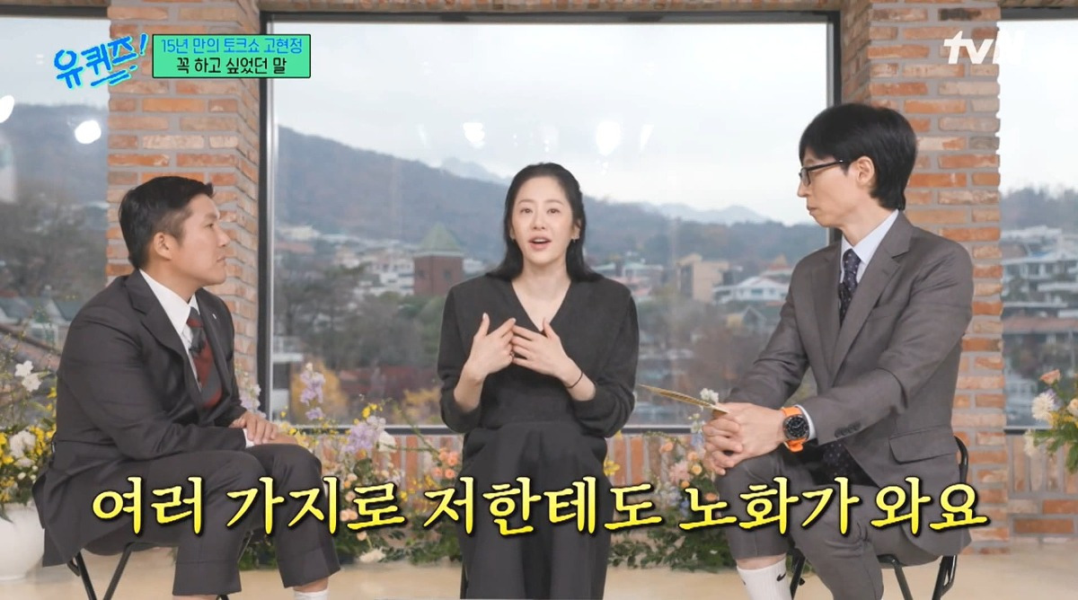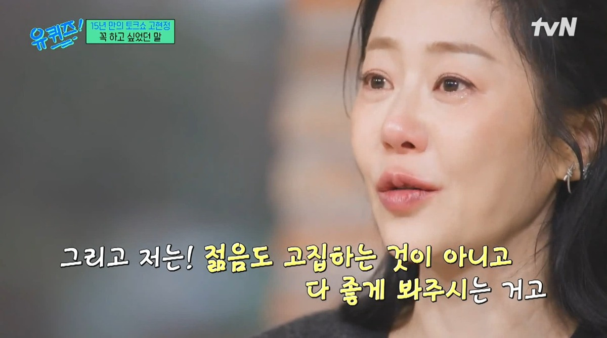 고현정: 그리고 저는! 젊음도 고집하는 것이 아니고 다 좋게 봐주시는 거고.. 저는 늙고 있습니다. 여러분