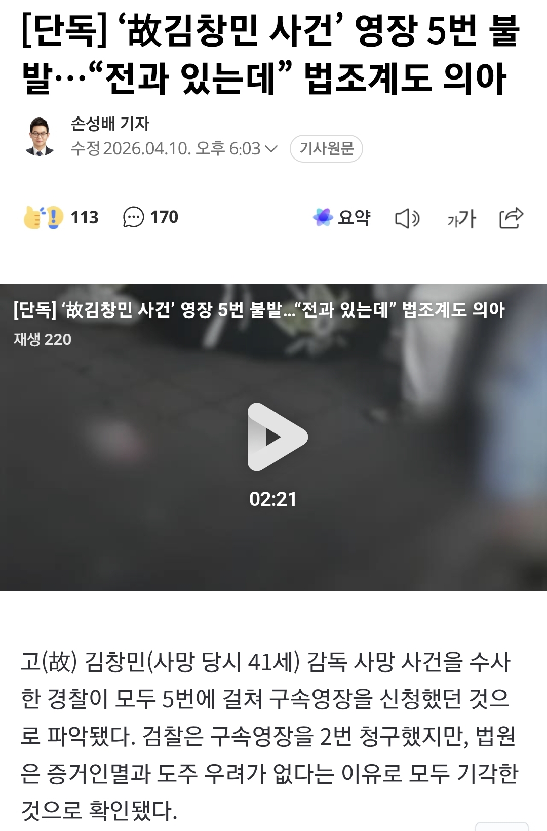 [여시뉴스데스크][단독] ‘故김창민 사건’ 영장 5번 불발…“전과 있는데” 법조계도 의아 작성자허니러스크|작성시간26.04.10|조회수2,505 목록 댓글 18 글자크기 작게가 글자크기 크게가 출처: https://n.news.naver.com/article/025/0003515412?sid=102여성시대 허니러스크영장 계속 기각해준 검사 누구여 다음검색 현재 게시글 추가 기능 열기 북마크 공유하기 신고 센터로 신고 댓글 댓글 18 댓글쓰기 답글쓰기 댓글 리스트 작성자아흐레 | 작성시간 26.04.10 어디 연줄 있나보네 작성자소리소문없이 | 작성시간 26.04.10 누구 자식이길래 그러냐 작성자해바다다 | 작성시간 26.04.10 법원 뭐야 ㅅㅂ 싹 다 ai로 대체해라 어떤놈들이잇는거야 작성자전쟁언제끝남 | 작성시간 26.04.10 미쳤나 진짜 작성자수면베개 | 작성시간 26.04.18 누구 아들임? 어디 연줄있네 댓글 전체보기