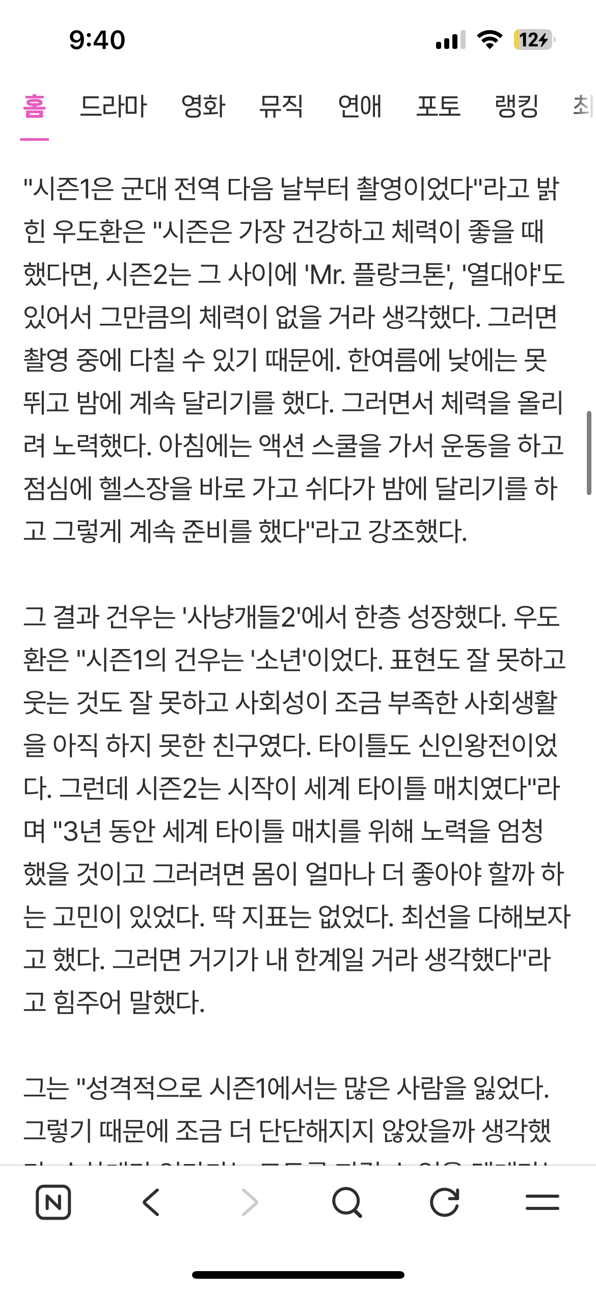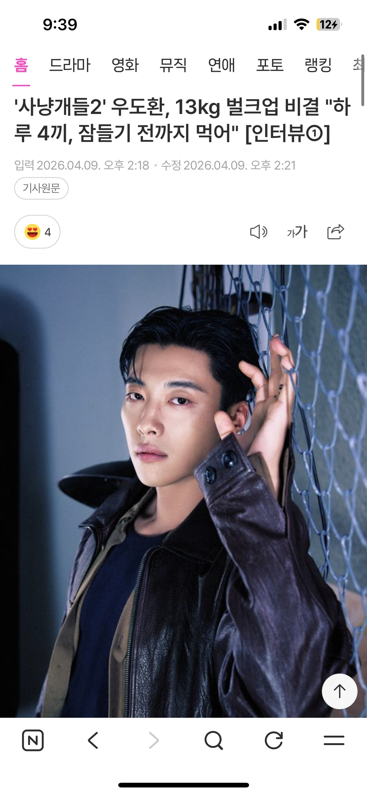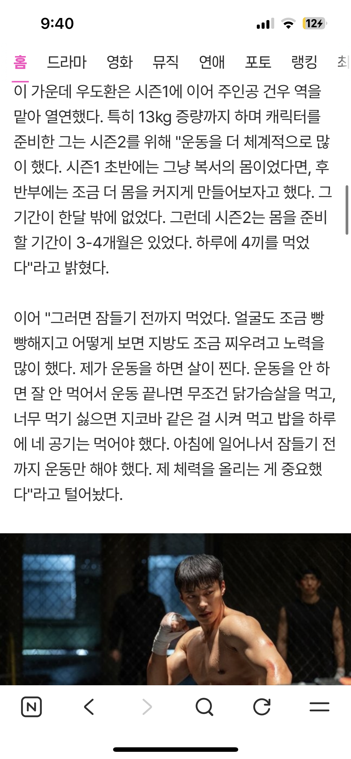 [여시뉴스데스크]'사냥개들2' 우도환, 13kg 벌크업 비결 "하루 4끼, 잠들기 전까지 먹어" 작성자주식으로잔금낼거야|작성시간26.04.10|조회수33,767 목록 댓글 23 글자크기 작게가 글자크기 크게가 출처: https://m.entertain.naver.com/home/article/109/0005510892 다음검색 현재 게시글 추가 기능 열기 북마크 공유하기 신고 센터로 신고 댓글 댓글 23 댓글쓰기 답글쓰기 댓글 리스트 작성자책많이많이읽자 | 작성시간 26.04.10 눈떠서 먹는거랑 운동만 했을듯....그러니 저렇게 보기 좋게 벌크업 되지 작성자봄똥비빔밥 | 작성시간 26.04.11 벌크업한거였어? 얼굴엔 살이 하나도 안붙었던데 신기하네 작성자소울트리 | 작성시간 26.04.11 몸 존나좋더라 ㄹㅇ 사냥개들 보는데 침나옴 개굿 고마우이 작성자알밤크림빵 | 작성시간 26.04.11 1기때 진짜 귀여웠는데 난 아쉽더라 ㅋㅋ 작성자뉴진스이혜인 | 작성시간 26.04.11 몸 진짜 운동선수같던데...대단하네 댓글 전체보기