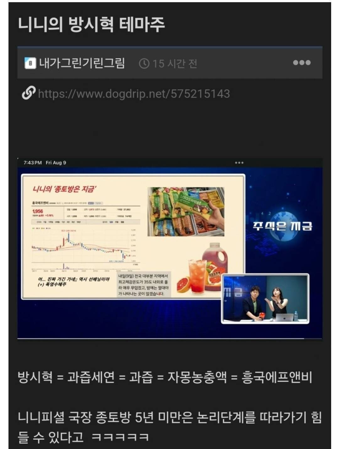 방시혁-과즙세연 기사가 뜨니