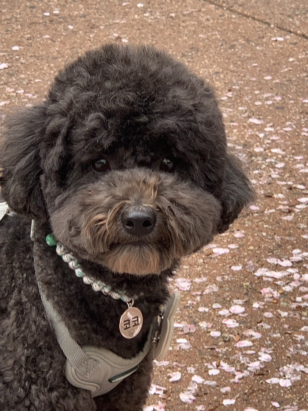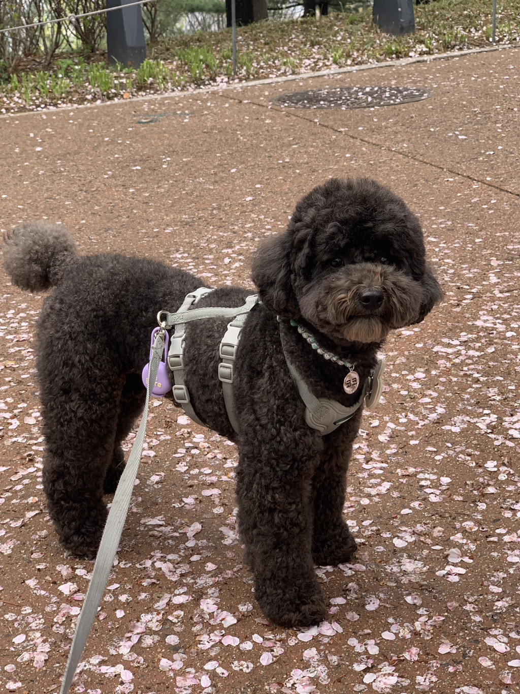 산책할 때 줄당김이 조금 있고, 호기심이 많아서 빙빙 도는 편이라