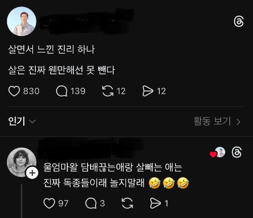 작성자나무와 바다 작성시간 26.04.15 유지가 진짜 개같음; 암도 5년동안 재발안하면 완치로 보는데 살뺀건 5년 유지해도 다시 돌아가려고 지랄발광해서 ㄹㅇ좃같아