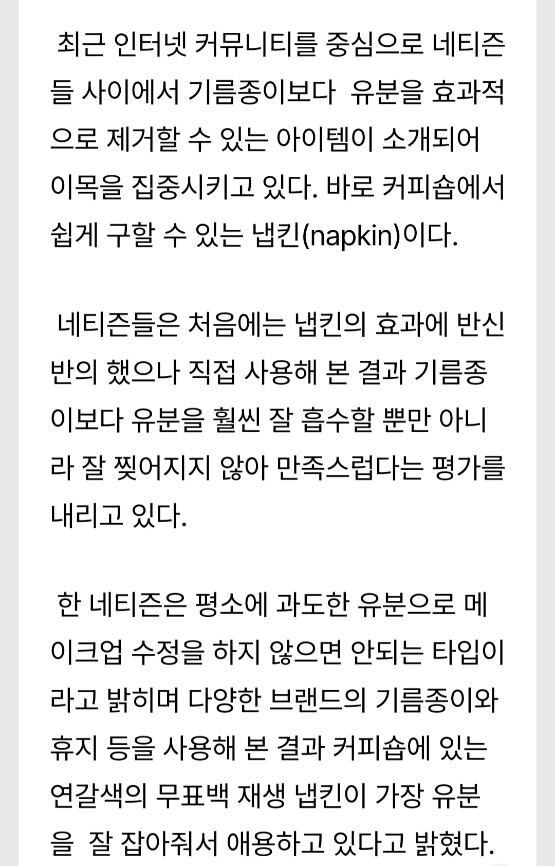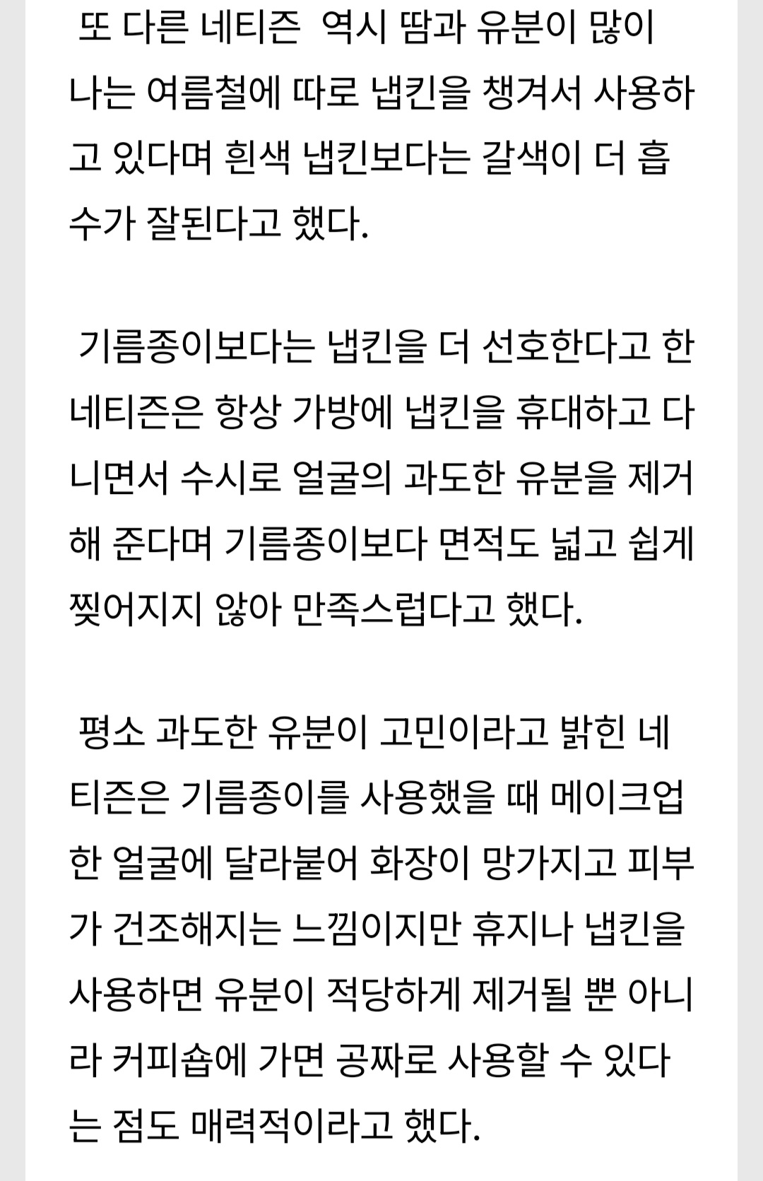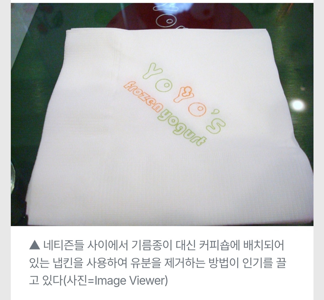 대체품으로 키친타올이나 휴지도 가능한데 냅킨이 효과 갑이라고 함