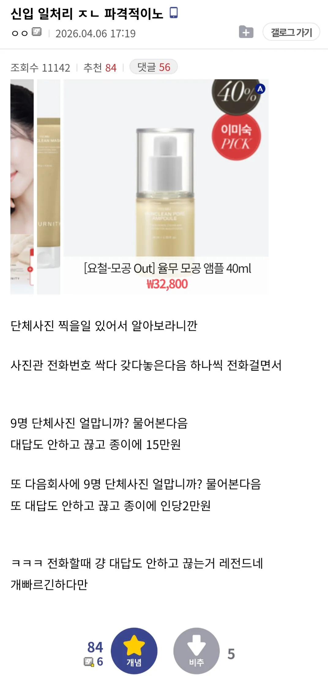 [흥미돋]중소기업갤에서 난리난 신입 일처리..jpg 작성자맛난샌드위치|작성시간26.04.15|조회수43,551 목록 댓글 288 글자크기 작게가 글자크기 크게가 출처: https://theqoo.net/square/41654957391 야무지다 일잘러다2 대답도 안하는게 인성터진거지 저게 일잘러라고? 다음검색 현재 게시글 추가 기능 열기 북마크 공유하기 신고 센터로 신고 댓글 댓글 288 댓글쓰기 답글쓰기 댓글 리스트 작성자이번주로또1등당첨 | 작성시간 26.04.17 저렁사람 ㅈㄴ많더라 요새 작성자daumcafe | 작성시간 26.04.17 2 기본은 해야지 작성자캠바오 | 작성시간 26.04.17 2 번 ㅡㅡ 미친거같음 작성자무화과커피 | 작성시간 26.04.18 폐급 땅땅 작성자고기사랑 | 작성시간 26.04.19 으휴 댓글 전체보기
