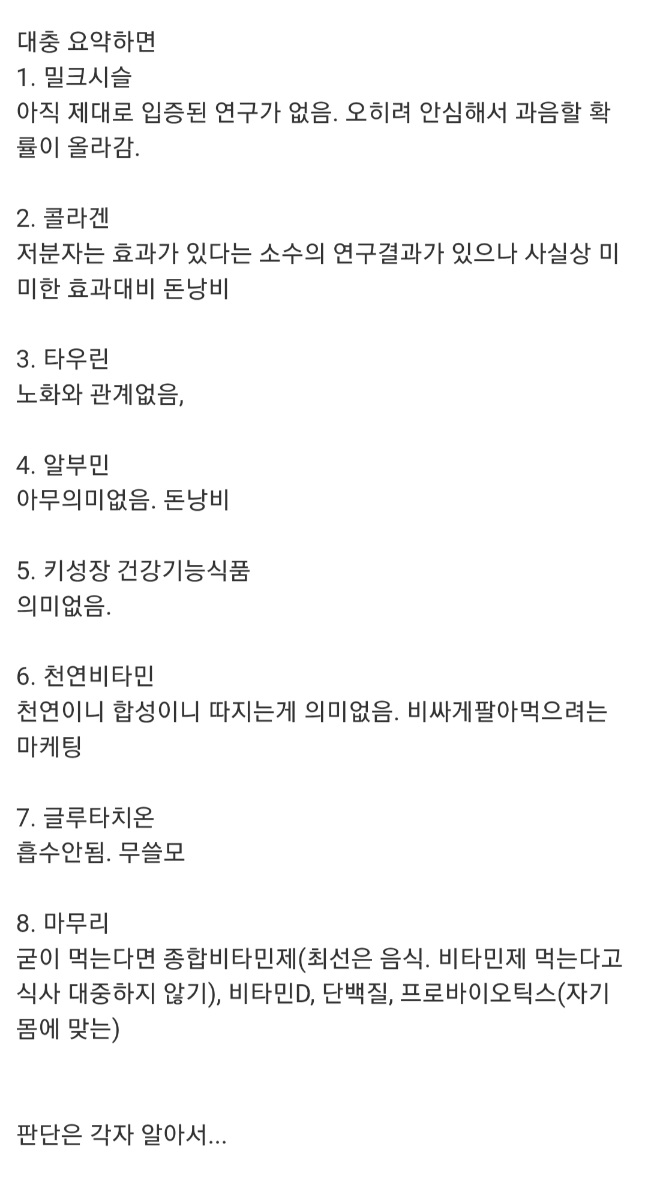 TV 나와서 약이나 팔아제끼는 쇼닥터들에 홀리면 안됨