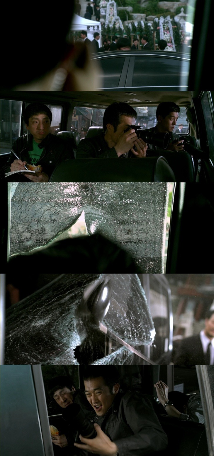 봉고차 안에 몰래 숨어 장례식장을 도촬하는 사람들
