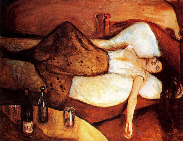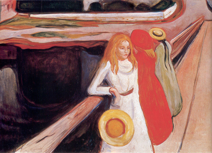 안녕 여시들!! 요즘 한국에서 뭉크전 하고있지? 그래서 옛글인데도 찾아오는 여시들이 꽤 있어서 수정해서 재업을 해보려함ㅎㅎ 그림은 아는만큼 보인다고 생각하기에, 뭉크전 관람 전후로 뭉크의 생애,그림에관한 뒷이야기를 수정,재업해보려해. 이런 뭉크의 소개에 앞서 "죽음,고독은 너무 무섭다. 우울이 전염된다"하는 여시들은 작품을 보거나,관람하지 않았으면 해ㅠㅠ 뭉크의 대부분의 작품은 내면의 죽음에대한 두려움을 기반으로 하거든. 그럼 시작할게!! 노르웨이의 빈민가에서 태어난 뭉크의 예술관은 회화라는 양식을 통해평생토록 죽음,질병의 망상에 시달린 뭉크의 내면세계가 많이 반영되어있어. 그래서 이번 소개는 필수로 뭉크의 일생과 같이 설명하게될거 같아. 자신의 내면의 불안을 담아내기 위해 뭉크는 강렬한 색채와 형태의 왜곡을 일삼았다능. 뭉크의 그림기반의 대부분이 불안을 나타내는건, 뭉크가 항상 죽음의 환영에 사로잡혀있었기 때문이야 가족의 죽음을 연이어 목격했던 그 유년시절의 기억이 제일 큰 부분을 차지하고있다능. '뭉크' 는 승려를 뜻하는 말로 고위직의 성직자였던 할아버지. 군의관이자 의사인 약간의 위트있던 아버지와 금슬 좋은 어머니 사이에서 태어남. 에드바르트 뭉크 '죽은 어머니와 아이' 1896 하지만 뭉크가 5-6살이 되던 해. 어머니가 결핵으로 돌아가셔. 뱃속에 아이를 품은 채로 아마 뭉크에겐 이 유년의 기억이 최초의 공포로 남지 않았을까 해. 위트있고 자상하던 아버지는 아내의 죽음 이후 점점 신경질적이고 냉소적인 사람으로 변하게 됨. 에드바르트 뭉크 '목소리' 1893 뭉크의 아버지는 어린 뭉크에게 언제나 귀에 닳도록 말했다고 해. "어머니가 천국에서 지켜보며 슬퍼한다" "너는 의사가 되어야해" 하지만 뭉크는 이를 저버리고 미술학교에 입학하고, 아버지는 아내를 잃은 슬픔을 잊고자 더더욱 신앙에 매달리며 광신도가 되어버림. 이런 아버지의 모습은 어린 뭉크에게 죽음과 지옥에 절망적인 공포를 갖게 했어 실제로 이런 잔소리로 인해 뭉크는 소리에대해 강박증을 갖게됨. 언제나 라디오 두대를 틀어놓고 서로다른 채널을 수신하는게 그의 일상이었고, 잠시라도 적막한곳은 견디지 못하고 사람들 사이 섞여있었어 하지만 정작 뭉크 자신은 내성적이고 폐쇄적인 성격이라 섞여있는걸 싫어했어. 강박증 때문에 어쩔수 없이 섞여있던 거였지. <병든소녀> 결핵에걸린 누이 소피에와 병상을 지키는 그의 이모. 23세에 뭉크가 기억을 떠올려 그림. 당시 독일 신문에선 이 그림을 '가재소스를 뿌린 생선죽같은 그림' 이라고 혹평함. 병약했던 뭉크도 13살이 되던 해, 결핵에 걸리게 됨. 그당시 뭉크는 이렇게 기도함. "열세 살 되던 크리스마스날 밤 나는 피를 토했었다. 열이 온몸을 흔들고 끔찍한 쇼크가 나를 삼켰다. 그러자 다음 순간 네가 최고의 심판자 앞에 서게 되다니, 넌 영원히 저주받을 거야." "이제 그는 신과 계약을 맺었다. - 신에 봉사하기로 약속을 한 것이다. 그가 다시 건강해진다면 - 어지럼증이 없어진다면 - 이전처럼 그렇게 마냥 즐겁게 살 수 없으리라고." 그리고 뭉크의 병은 나았어. 하지만 그의 누이이자 어머니의 역할을 도맡아오던 누이 소피에가 결핵에 걸리고 얼마지나지 않아 사망하게 됨ㅠㅠ.. 자신의 죽음에대한 공포를 체험한 소년 뭉크는 누이의 죽음이 자신의 책임에 있다는 죄책감을 갖고 살아가게됨. 이렇듯 뭉크의 그림에서 등장하는 사람들은 대부분, 슬픈 표정, 병상을 지키는 사람들. 검은옷의 사람들이 주를 이루고있어. 사실 뭉크가 의사가 되기 싫었던 이유는 그런 아버지에 대한 반항심도 있었지만, 집에 의사가 있었으면서도 자신들의 가족을 살리지 못함에도 큰 이유가 됐음. 그런 죽음에 이르는 병을 견디기 위한 탈출구로서의 예술 활동을 뭉크가 선택했다는 것은 지극히 당연한 것이다 라고 평론가들은 말함. 그리고 그 이후, 뭉크의 여동생 로이라는 종교에 심취해 정신병에 이르게 됨.(정신착란 증상) 그림을 보면 여자의 표정이 심오하고 우울한게 보이지 않냐능? 이렇듯 가족 중 여자들이 죽게 된 것에서 뭉크의 여성공포증이 발현됨. (결핵으로 죽은 어머니, 같은 병으로 죽은 누이, 정신착란을 갖게 된 여동생) 뭉크의 여성공포증이 극에 달하게 된건 뭉크가 연애를 겪고 나서였음. 뭉크가 연애를 시작하지만 순정파인 뭉크와 달리 연인 탈로는 프리섹스주의자였어. 자유로운 연애를 추구함. 다른남자와 성관계를 맺는 탈로를 보며 뭉크는 한번더 단계높은 여성공포증을 갖게 됨ㅠㅠ 툴라와 뭉크 그의 두번쨰 연인인 툴라. 1899년 예술가와 지식인들의 모임에서 툴라 라르센을 만나게 돼. 툴라의 구애로 둘은 사귀게 되지만, 툴라의 집착으로 인해 뭉크는 헤어짐을 결심하고 그녀에게 이별음 고해. 하지만 그녀는 받아들일수 없다며 권총으로 자살시도를 하게됨. 그걸 말리다 뭉크는 한쪽 손가락이 잘려나가게되는 사고를 겪음. 이 사건은 뭉크에게 마치 여성으로부터 거세를 당하는 듯한 트라우마를 안겨주었어. 그 뒤론 그림에 손을 그리지 않았음. 그리게 되더라도 손톱 등 디테일한 표현을 하지않고 뭉뚱그러