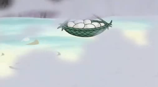 소라가 달걀 깨고 피요몬은 팔을 퍼덕이며 불을 피움