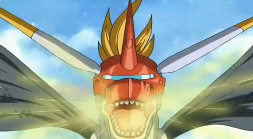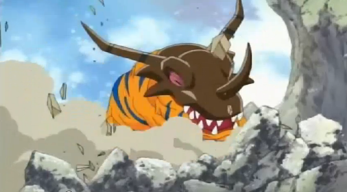 아구몬도 그레이몬으로 진화해 싸우지만 공격이 안먹히고 계속 당하고이쑴