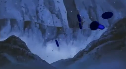 갑자기 저 절벽이 반으로 쩍 갈라져 벌어지더니 검은 톱니바퀴들이 슝슝 나옴