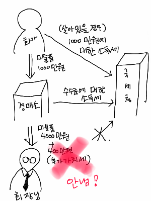 2) 중계하는 화랑, 경매소 등은 수수료를 받음. 그리고 그 수수료 = 사업소득. 따라서 세금 지불.