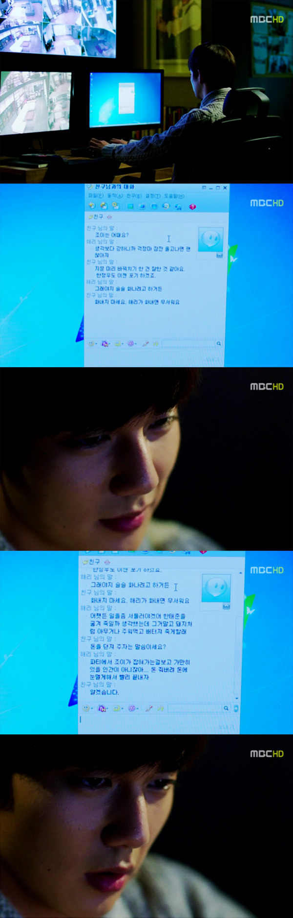 채팅이 끝난 해리는 형사들이 왔던 cctv를 지켜봄