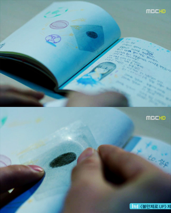 수연이 일기장에서 채취한 지문과 조이 지문을 대조 하는 중