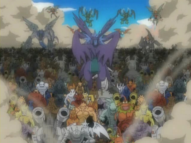 그림은 짐승형 디지몬들을 이끌고 디지털 월드의 중심부로 진격하는 장면이다.