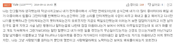 작성자리락쿠마빠수니 작성시간 14.10.02 이건 여자가 더 좋아하는 연애가 아니라 여자만 좋아하는 연애잖아...아 찌통ㅠㅠㅠㅠㅠㅠㅠㅠ