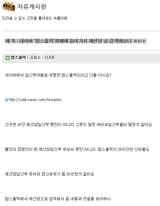 나도 솔직히 그 사건터지고 맘스홀릭 가보긴 가봤는데