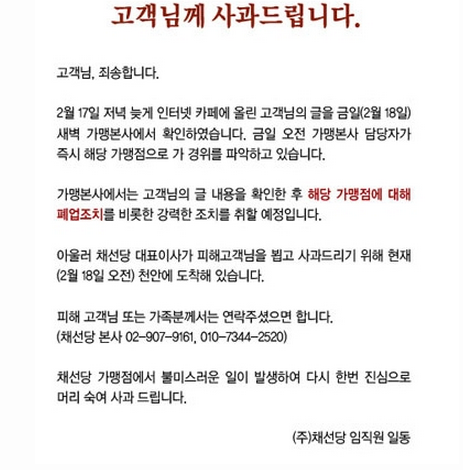 아무튼 이 사건이후로 천안 채선당은 페쇄함